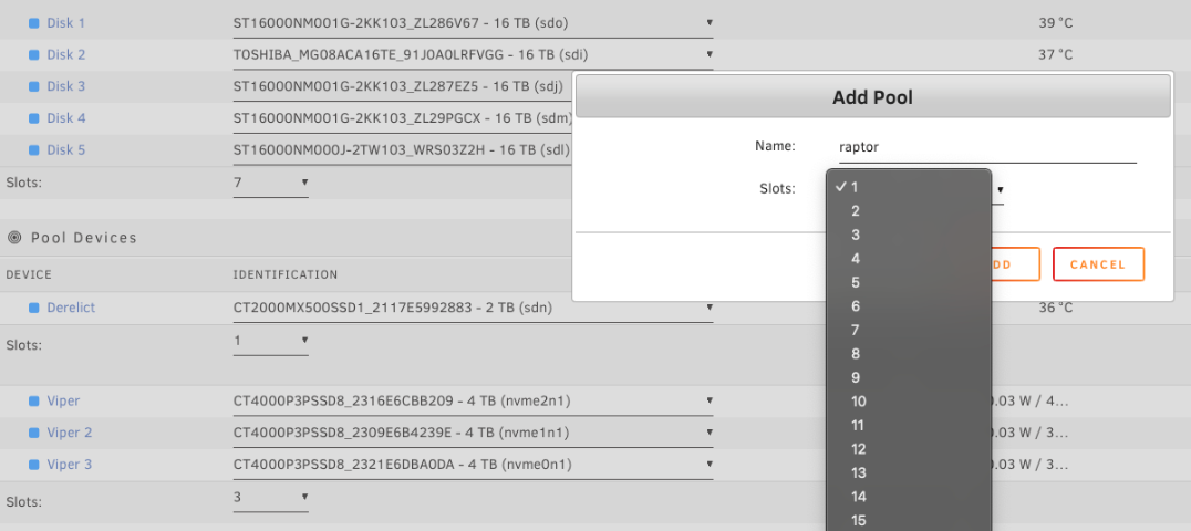 raptor)。 - 设置槽位数量以匹配您想要在主数据 vdev(s) 中的磁盘数量。